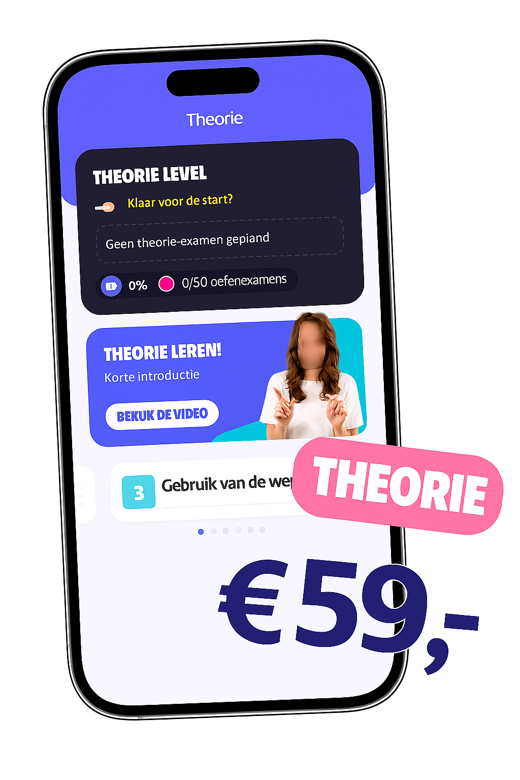 50+ oefenexamens – Train jezelf met realistische examens en verhoog je slagingskans Interactieve leermodules – Theorie leren in duidelijke stappen, inclusief visuele uitleg Directe voortgangscontrole – Volg je leerproces en zie precies waar je staat Mobiel en toegankelijk – Alles via je smartphone, geen boeken nodig Betaalbaar en compleet – Slechts €59,- voor volledige toegang